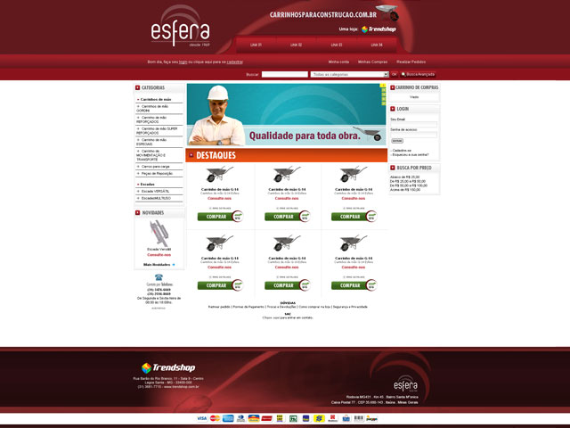 Criação do site ESFERA A Esfera Estamparia de Ferroe Aço é fabricante do melhor carrinho de mão produzido no país. E como parte de sua nova política de expanção, a NETUNA desenvolveu a loja virtualcarrinhosparaconstrucao.com.br O Objetivo desta loja virtual é comercializar os produtos da Esfera diretamente aos seus clientes de pequeno e médio porte. […]
