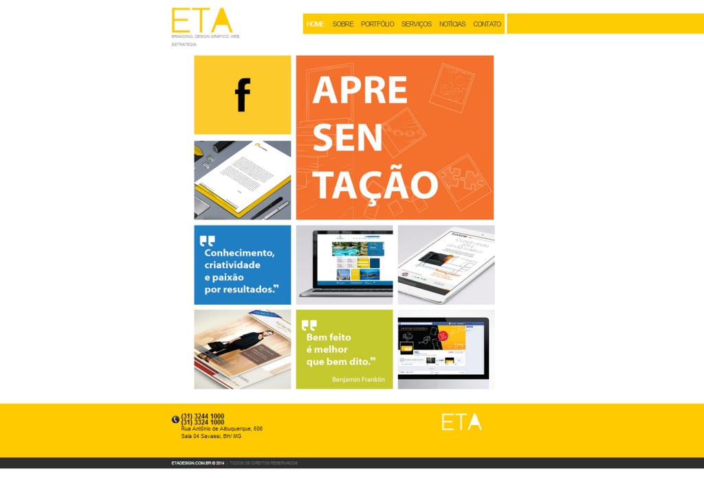 Criação do site ETA DESIGN A ETA design é uma empresa de visão ampla e estratégica, que busca diariamente soluções de design, para uma comunicação cada vez mais eficiente entre cliente e mercado. Trabalhamos com uma equipe sinergética, alinhada, com elevada experiência nas áreas de criação, direção de arte, identidade visual, gerenciamento digital, web, branding, […]