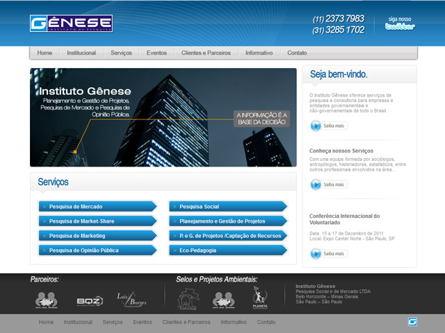 Criação do site INSTITUTO GÊNESE O Instituto Gênese oferece serviços de pesquisa e consultoria para empresas e entidades governamentais e não-governamentais de todo o Brasil.Para tal, a netuna elaborou um site institucional com informações sobre os serviços prestados pela Gênese.O website tem linguagem de desenvolvimento php e é dinâmico. O Objetivo do site é divulgação […]