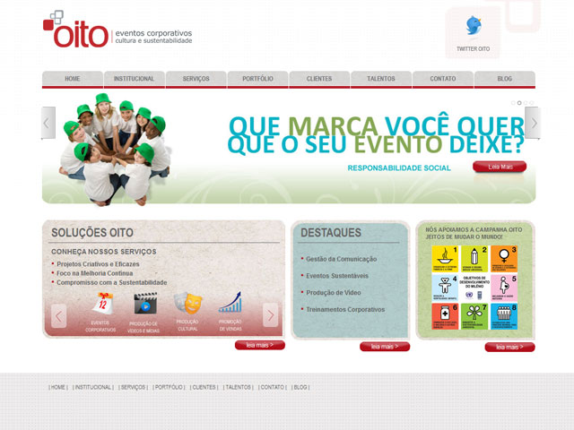 Criação do site OITO EVENTOS A Oito Eventos Corporativos, Cultura e Sustentabilidade é especializada em gestão de eventos corporativos e sustentáveis aonde desenvolve e implanta projetos de endomarketing e socioambientais. Para a oito a necessidade de um website que passase estes três pilares era fundamental. A netuna desenvolveu um lindo projeto com bastante cores e […]