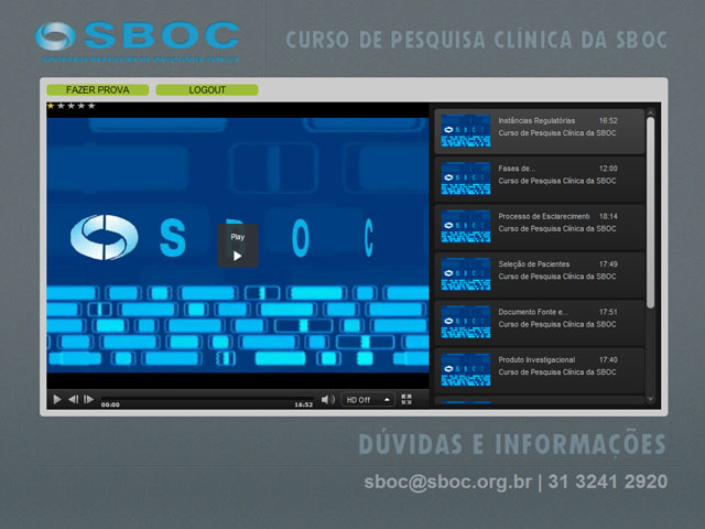 Criação do site CURSO SBOC HOT SITE para a SBOC ( Sociedade Brasileira de Oncologia Clínica ) para prova de certificação, com fotos, vídeos e avaliação. criação de sites bh criação de websites