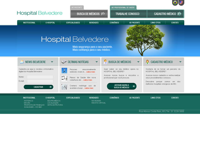 Criação do site HOSPITAL BELVEDERE Mais completo, mais moderno e mais seguro, o Hospital Belvedere segue sempre buscando melhorias. Em janeiro de 2009, a Clínica deu um grande passo e se transformou em Hospital Belvedere. O novo conceito se deve a uma maior excelência na qualidade dos equipamentos e serviços, uma equipe altamente capacitada. Para […]