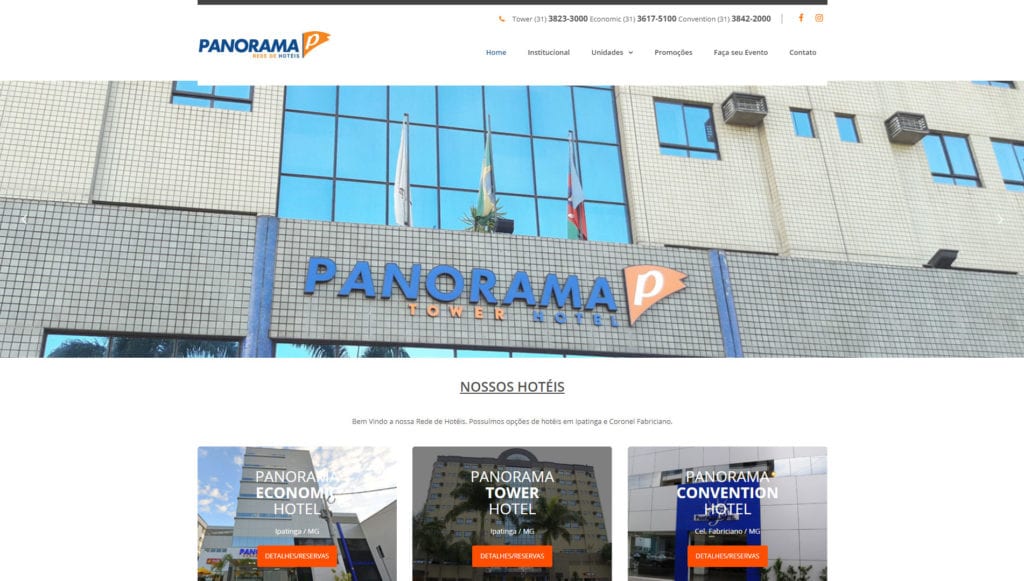 Criação do site PANORAMA REDE DE HOTÉIS Linguagem de desenvolvimento do website: WORDPRESS/PHP/HTML/CSS 3. criação de sites bh criação de websites Website PANORAMA REDE DE HOTÉIS