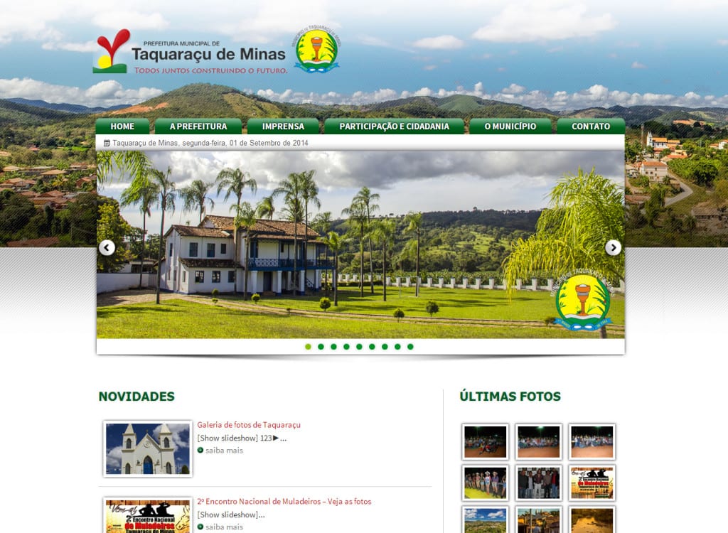 Criação do site PREFEITURA DE TAQUARAÇU DE MINAS Taquaraçu, palavra de origem indígena, que significa “taquara grossa” nomeava importante arraial que floresceu em meados do século XVIII, resultante das incursões de bandeirantes por terras mineiras. criação de sites bh criação de websites criação de sites wordpress Website PREFEITURA DE TAQUARAÇU DE MINAS