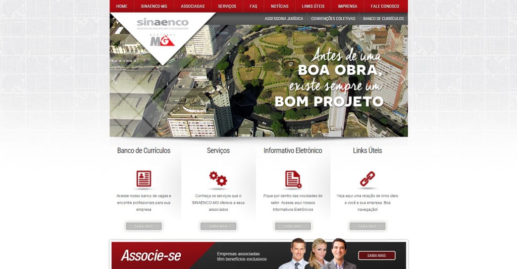 Criação do site SINAENCO/MG O Sindicato Nacional das Empresas de Arquitetura e Engenharia Consultiva de Minas Gerais (Sinaenco-MG) atua na representação das empresas do ramo no Estado. Nosso papel é promover sua integração, do ponto de vista institucional e empresarial, assegurando uma representatividade forte, ética e dinâmica. criação de sites bh criação de websites criação […]