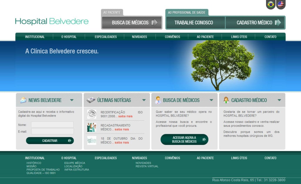 Criação do site HOSPITAL BELVEDERE Tudo começou com a primeira sede da Sanitas Policlínica, localizada na Av. Francisco Sales, no Bairro Santa Efigênia, em Belo Horizonte. O cirurgião plástico Dr. César Arrunátegui e sua equipe contavam com a colaboração de apenas quatro funcionários para realizar os procedimentos cirúrgicos. A idéia, porém, era transformar a clínica […]