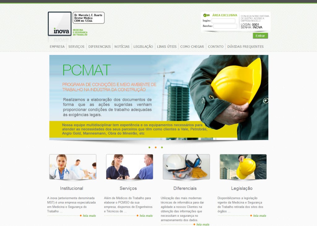 Criação do site INOVA A inova (anteriormente denominada MST) é uma empresa especializada em Medicina e Segurança do Trabalho, que desde de 1995 presta a seus Clientes serviços com qualidade e eficiência. As nossas rotinas de gestão do PCMSO são totalmente informatizadas, para que nossos Clientes estejam sempre com a documentação em ordem. criação de […]