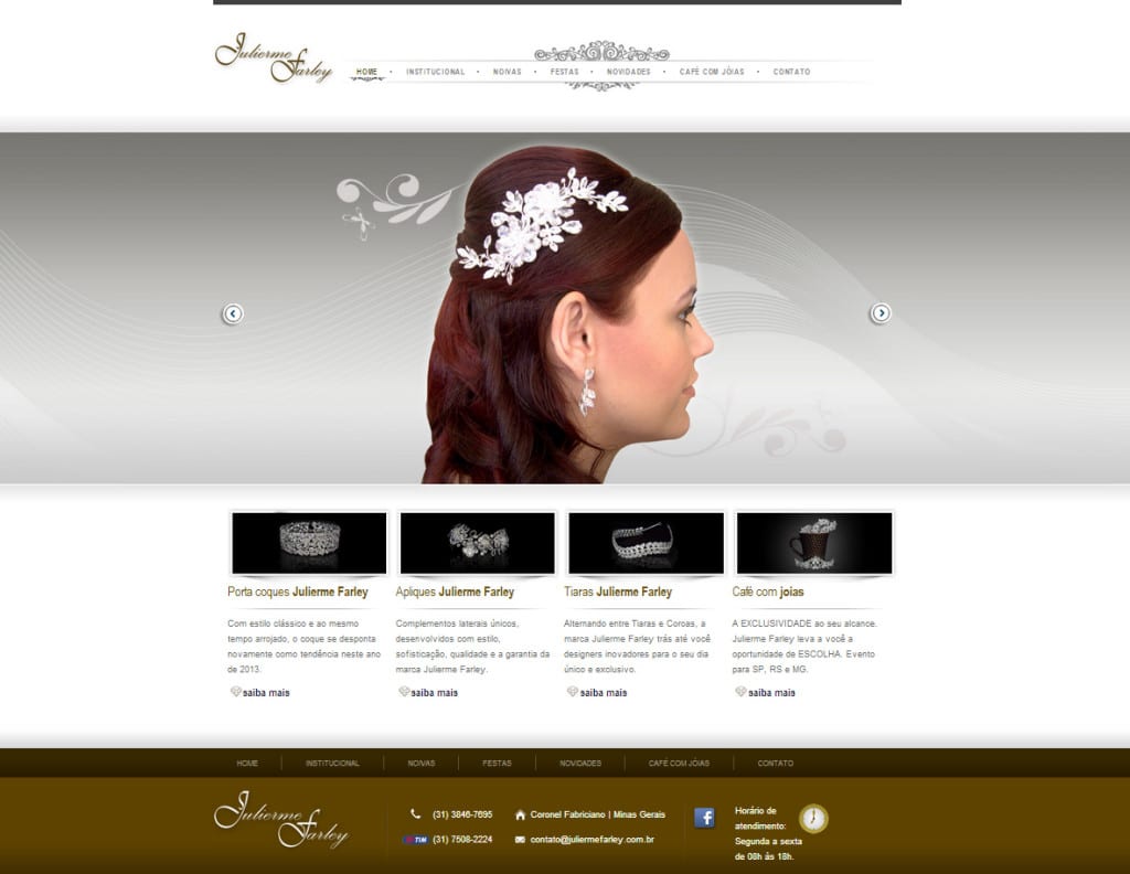 Criação do site JULIERME FARLEY A história da MARCA Julierme Farley começa no ano de 1999, com o início das atividades de uma das empresas da família que atuava no mercado de vestidos para noivas.Naquele momento a idéia era de revender e alugar vestidos especiais para casamento. Ao passar do tempo, a necessidade de ter […]