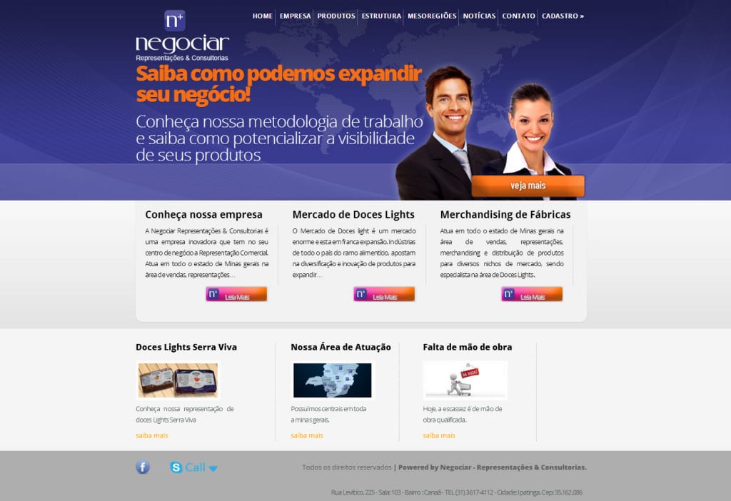 Criação do site NEGOCIAR Negociar Representações & Consultorias. é uma empresa inovadora que tem no seu centro de negócio a Representação Comercial. Atua em todo o estado de Minas gerais na área de vendas, representações de produtos para diversos nichos. criação de sites bh criação de websites criação de sites wordpress Website NEGOCIAR